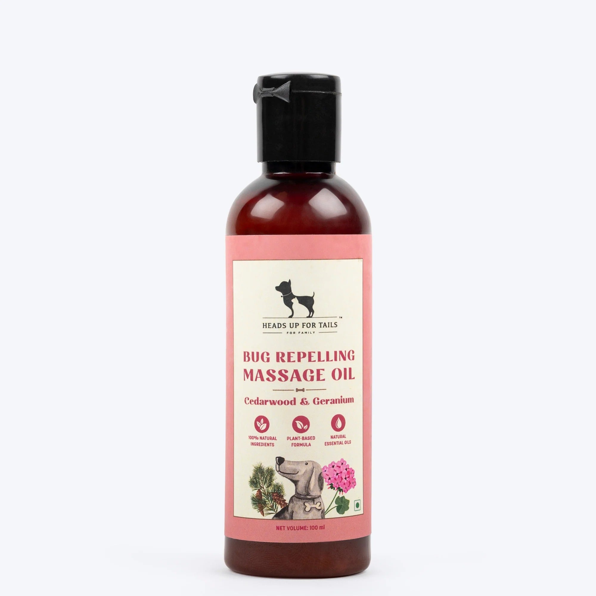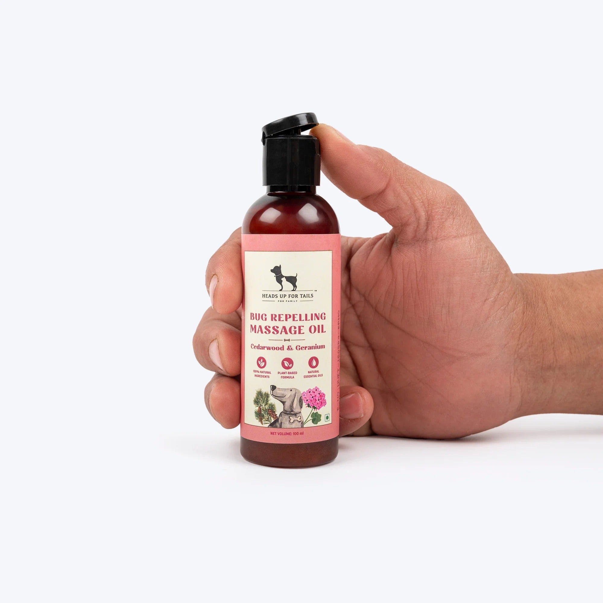 يستغل زيت التدليك الطارد للحشرات من HUFT الخصائص الطبيعية الطاردة للحشرات الموجودة في زيت إبرة الراعي، وزيت الكافور، وزيت خشب الأرز، وزيت الليمون. تُستخدم هذه الزيوت العطرية بكميات مُقاسة وآمنة، وتُخلط مع زيت جوز الهند العضوي المعصور على البارد، لتوفير تركيبة فعّالة لطرد الحشرات. يتميز زيت جوز الهند بخصائصه المرطبة والمضادة للميكروبات، لذا فإن التدليك بهذا الزيت يترك فراء الكلب لامعًا وجميلًا.