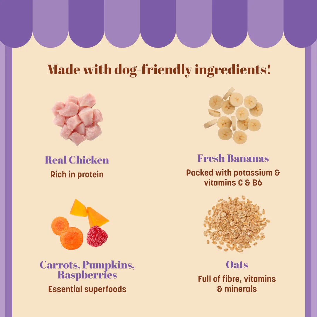 We brought your favorite bakes and desserts from around the world and made them for your dog to enjoy! Our English Banoffee Pie Bakery Treats are rich in protein and packed with the goodness of fresh bananas! This bite-sized, dog-friendly version of the globally-loved pie is the perfect way to share your favourite desserts with your pets.
