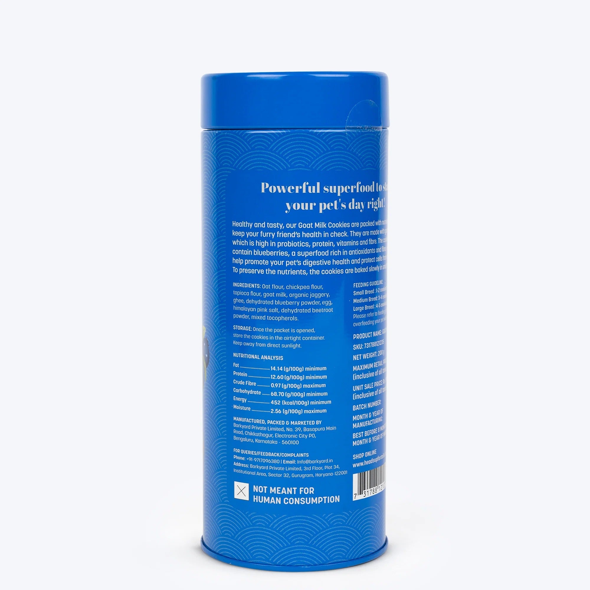 These gluten-free, all-natural cookies are slow baked in small batches to retain their nutrients. Made with real blueberries and goat's milk, these cookies are high in probiotics, protein, vitamins and fibre, promoting digestive health and overall well being of your pet.