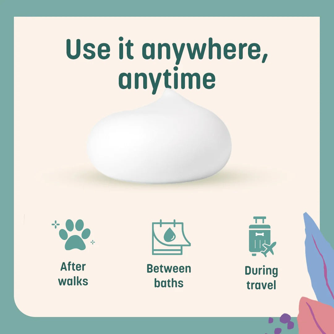 Developed by our scientists at HUFT Innovation and Manufacturing Centre, this no rinse shampoo requires no bath to keep your companion clean. It's perfect for post-walk clean ups, in-between baths and your adventurous travels. All you've got to do is: